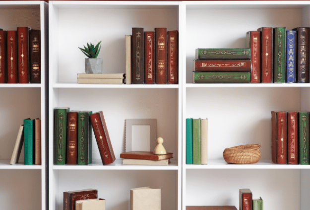 - Position books properly: Store upright with spines facing outward whenever possible